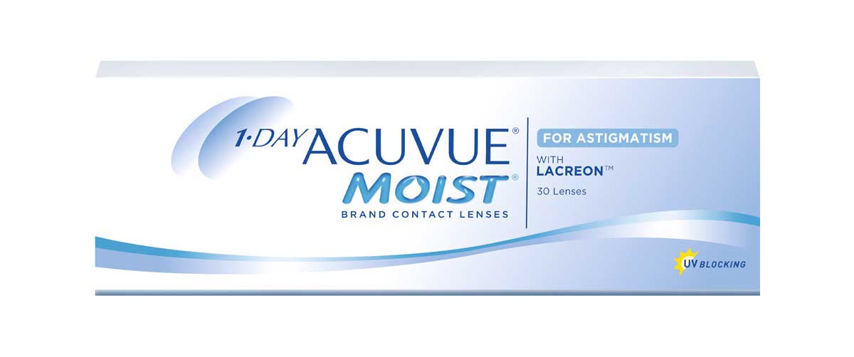 1-DAY ACUVUE® MOIST FOR ASTIGMATISM to hydrożelowe jednodniowe soczewki od Johnson & Johnson zaprojektowane specjalnie dla osób z astygmatyzmem. Potrafią skorygować prawie 99% oczu z wadą sferyczną lub astygmatyzmem. Soczewki zbudowane są w technologii Stablizacji Powiekami ESD, która wykorzystuje naturalną siłę mrugania  co zapewnia wyraźne i stabilne widzenie przez cały dzień, bez względu od aktywności fizycznej użytkownika. Przy każdym mrugnięciu soczewka naturalnie poprawia swoją pozycję na oku. Soczewka  1-DAY ACUVUE® MOIST FOR ASTIGMATISM  jest jednocześnie równie łatwa w aplikacji jak soczewka sferyczna.