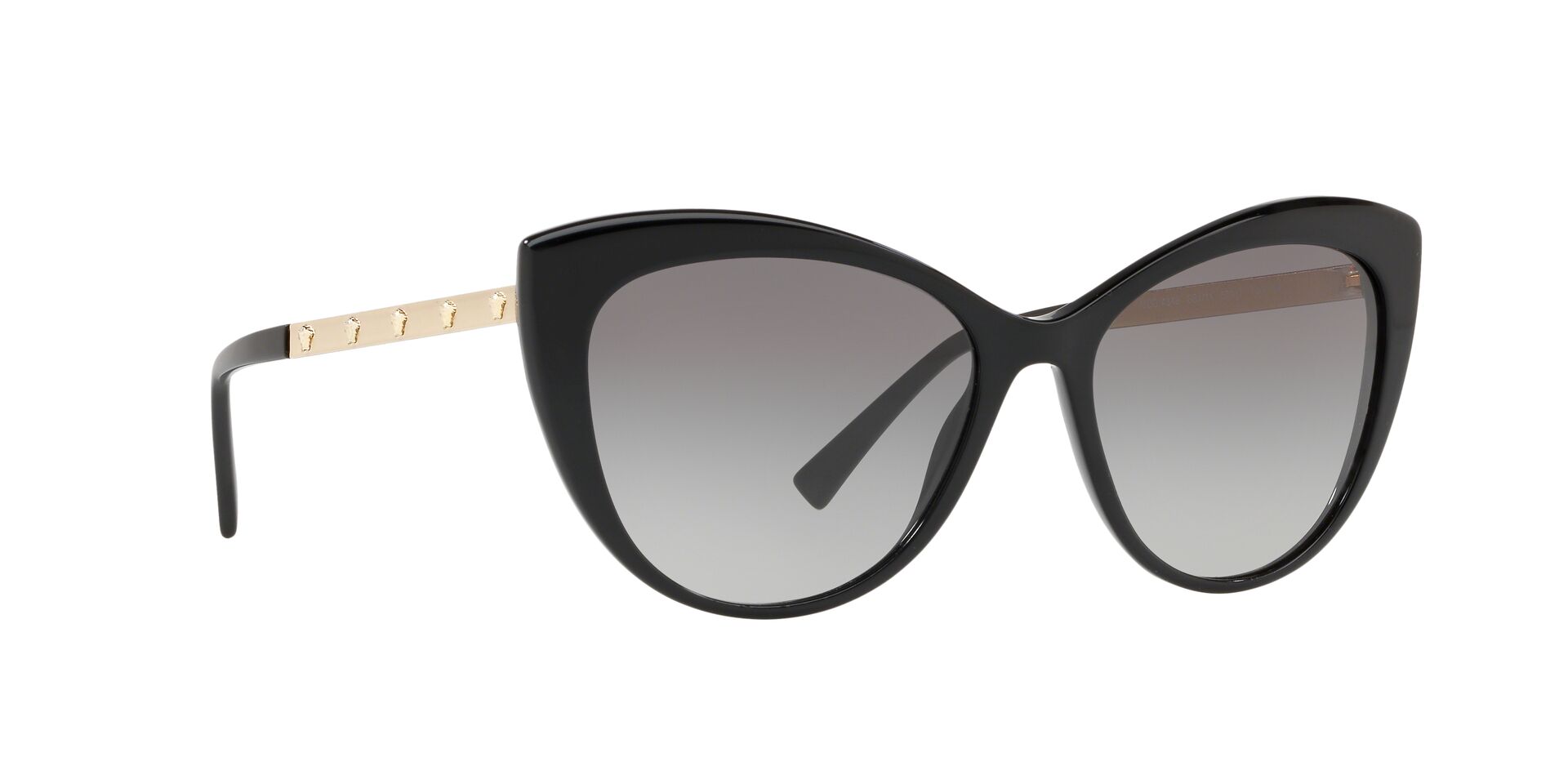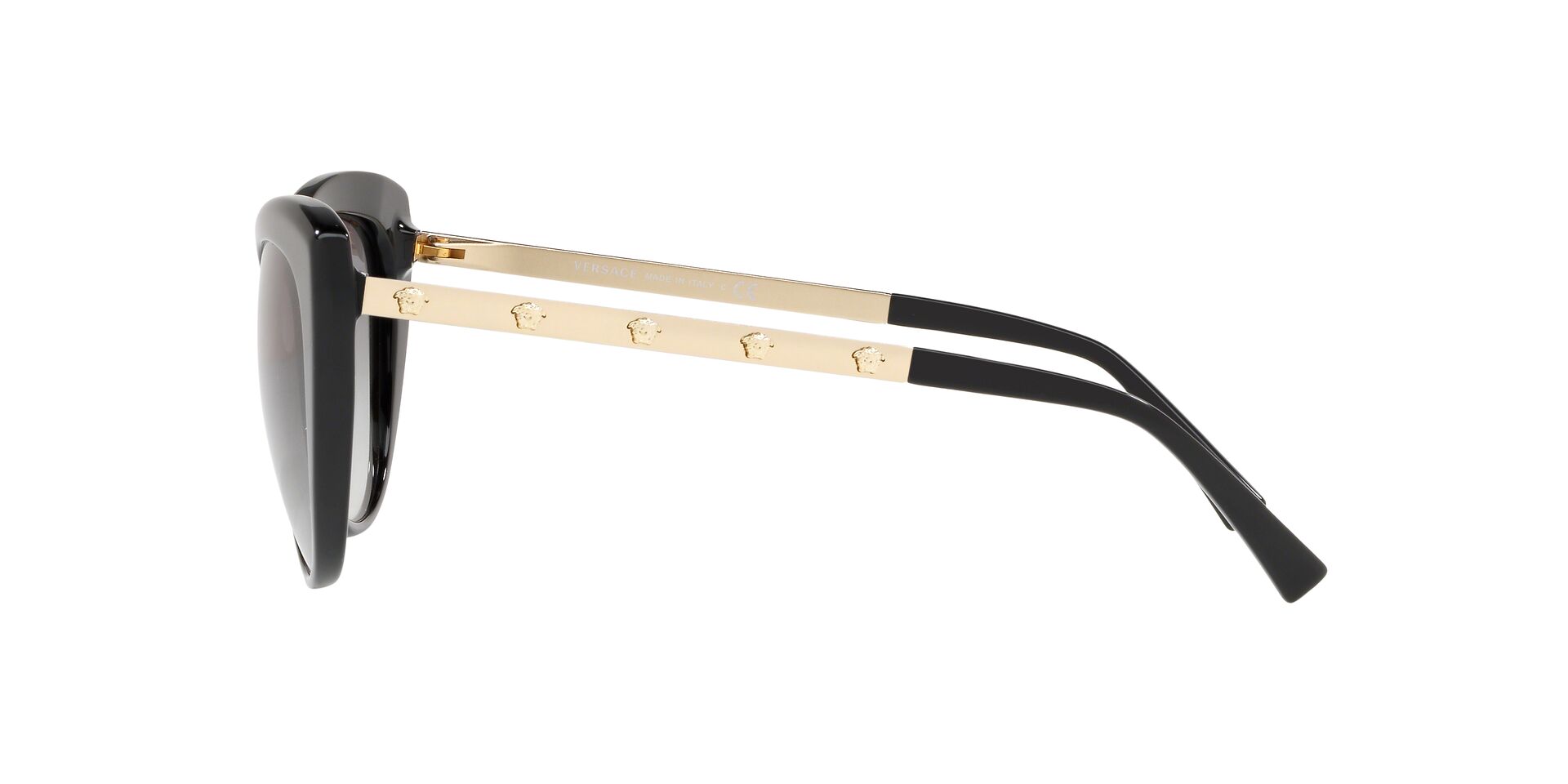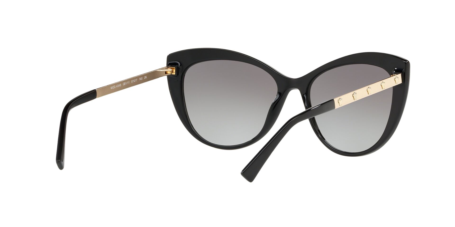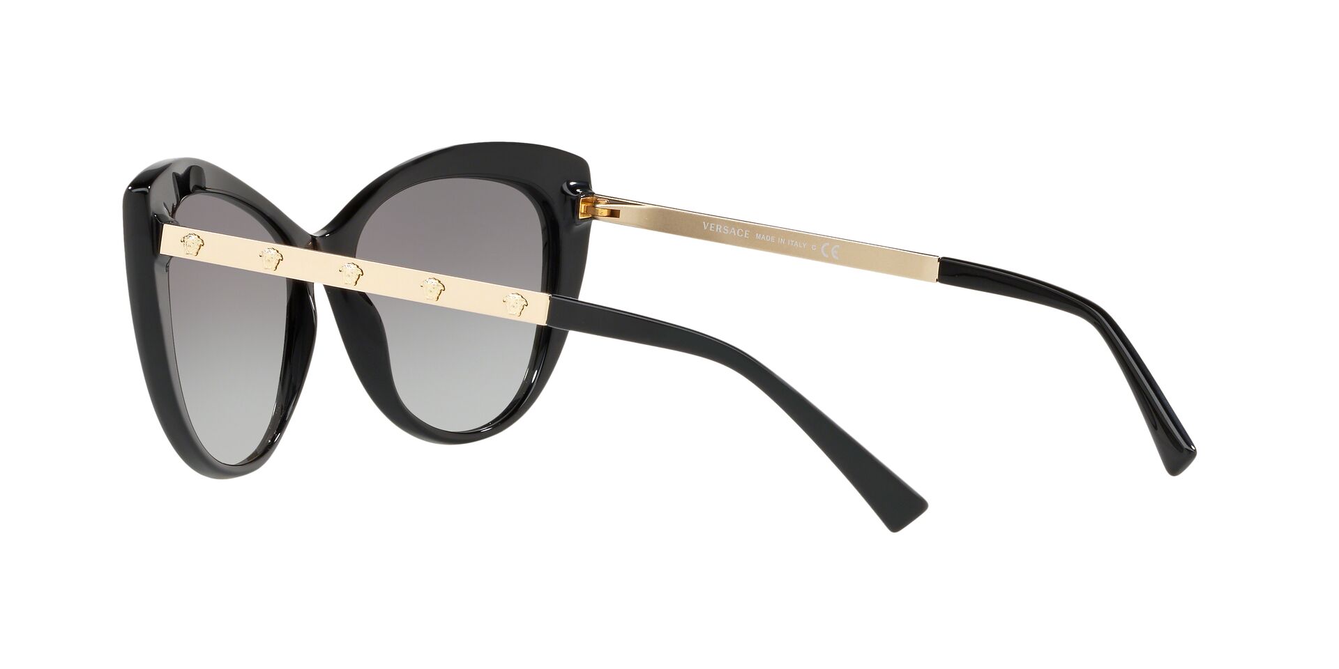 Okulary przeciwsłoneczne Versace VE4348 GB1/11 należą do bestsellerów marki luksusowej Versace. Delikatne i kobiece, choć jednocześnie wyraziste i z charakterem idealnie odzwierciedlają ducha marki. Czerń i złoto grają główne role w tym “kocim” modelu idealnym dla osób szukających czegoś “z pazurem”. Dodatkowo na metalowych zausznikach znajdziemy aż 10 twarzy Meduzy – symbolu nierozłącznego z marką Versace.