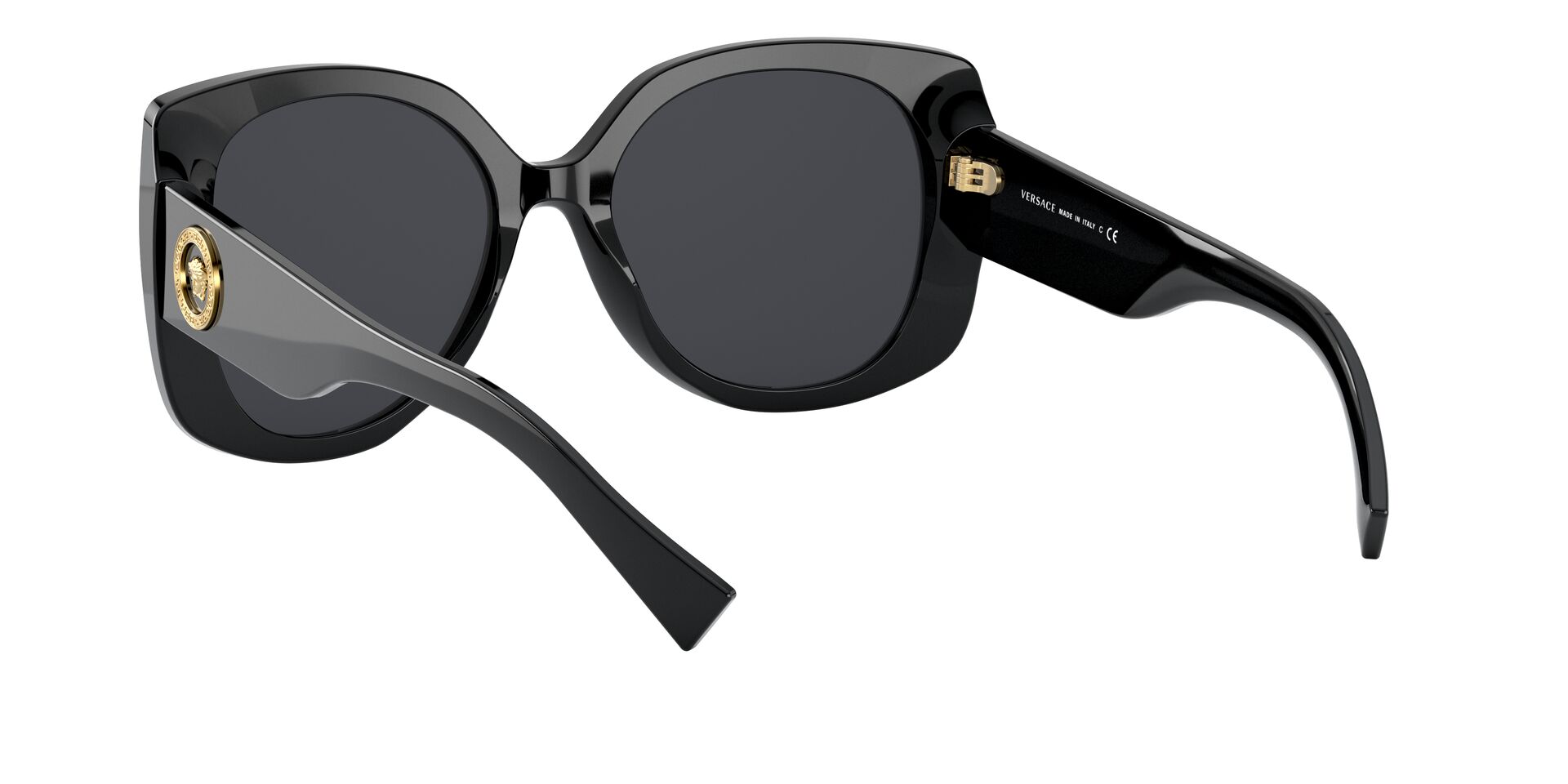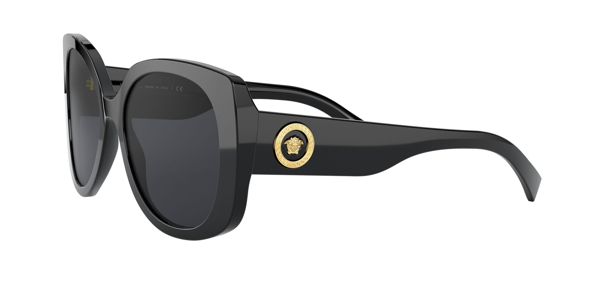 Okulary przeciwsłoneczne Versace VE4387 GB1/87 to jeden z najlepiej sprzedających się modeli marki Versace. Czarne szkła w okrągłym kształcie przywodzą na myśl ikoniczne okulary Audrey Hepburn z filmu “Śniadanie u Tiffany’ego”. Nowoczesnego charakteru nadają im motylkowe grube oprawy – utrzymując równowagę między minimalistyczną formą a oversizowym stylem. Wyrazista oprawa uzupełniona jest dużymi zausznikami z nieodzownym logo marki Versace.